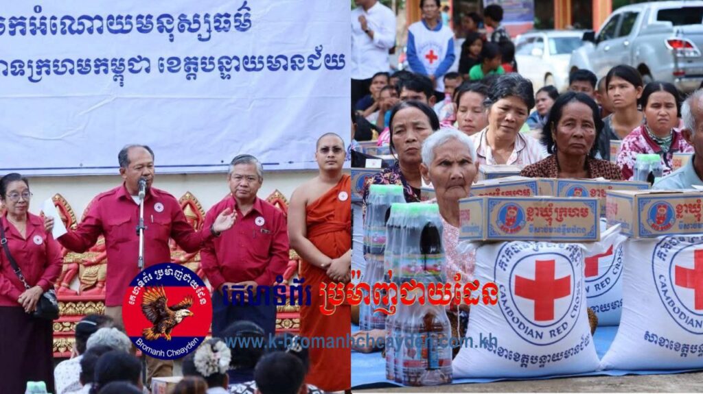 ខេត្តបន្ទាយមានជ័យ៖ នៅព្រឹកថ្ងៃពុធ ទី១ ខែតុលា ឆ្នាំ២០២៥ ឯកឧត្តម អ៊ុំ រាត្រី អភិបាល នៃគណៈអភិបាលខេត្តបន្ទាយមានជ័យ និងជាប្រធានគណៈកម្មាធិការសាខាកាកបាទក្រហមកម្ពុជាខេត្ត បាននាំយកអំណោយមនុស្សធម៌សាខាកាកបាទក្រហមកម្ពុជាខេត្ត ផ្តល់ជូនដល់ពលរដ្ឋដែលមានជីវភាពខ្វះខាត២៥០គ្រួសារ មកនៅក្នុងភូមិសិលាខ្មែរ ១៥០គ្រួសារ និងភូមិទំនប់ដាច់១០០គ្រួសារ ពិធីនេះប្រារព្ធធ្វើឡើងនៅវត្តសុវណ្ណសីលារាម (វត្តអាងសិលា) ស្ថិតនៅឃុំអូរបីជាន់ ស្រុកអូរជ្រៅ ខេត្តបន្ទាយមានជ័យ។ នាឱកាសនោះឯកឧត្តម អ៊ុំ រាត្រី បានពាំនាំប្រសាសន៍ផ្តាំផ្ញើសារសួរសុខទុក្ខពីសំណាក់ សម្តេចកិត្តិព្រឹទ្ធបណ្ឌិត ប៊ុន រ៉ានី ហ៊ុនសែន ប្រធានកាកបាទក្រហមកម្ពុជា និងលោកជំទាវបណ្ឌិត ពេជ្រ ច័ន្ទមុនី ហ៊ុនម៉ាណែត អនុប្រធានអចិន្ត្រៃយ៍កាកបាទក្រហមកម្ពុជា ជានិច្ចកាល សម្តេច និងលោកជំទាវបណ្ឌិត តែងតែគិតគូរពីសុខទុក្ខរបស់បងប្អូនប្រជាពលរដ្ឋ ដោយមិនទុកឱ្យនរណាម្នាក់ស្លាប់ដោយអត់អាហារនោះឡើយ។ Read more