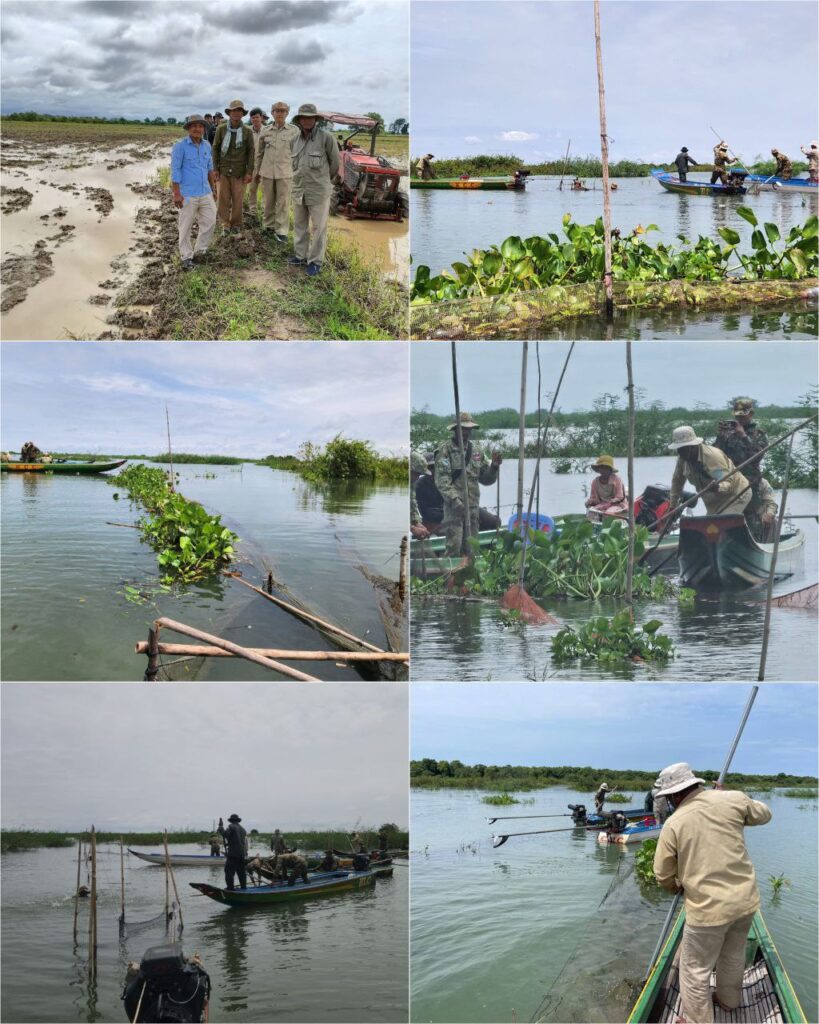 កម្លាំងជំនាញចម្រុះបន្តចុះប្រតិបត្តិការចុះបង្ក្រាបបទល្មើសនេសាទបឹងទន្លេសាបដែលប្រជានេសាទប្រើឧបករណ៍ខុសច្បាប់ជាលទ្ធផលអនុវត្តបាន០១ករណី បានរុះរើនិងកាប់បំផ្លាញចោលឧបករណ៍នេសាទខុសច្បាប់របាំងសាច់អួនក្រឡាញឹកនៅនឹងកន្លែងរួមមាន÷ របាំងសាច់អួនក្រឡាញឹកចំនួន៣របាំង ប្រវែង៩០០ម៉ែត្រ ឡុកសាច់អួនចំនួន ៦គ្រឿង លូឬលបចំនួន១២មាត់ បង្គោលកូនឈើចំនួន២១០ដើម និងចាក់លែងកូនត្រីចំរុះទំងន់១៥ គីឡូក្រាមចូលទន្លេវិញ៕ដោយលោក សំនៀង