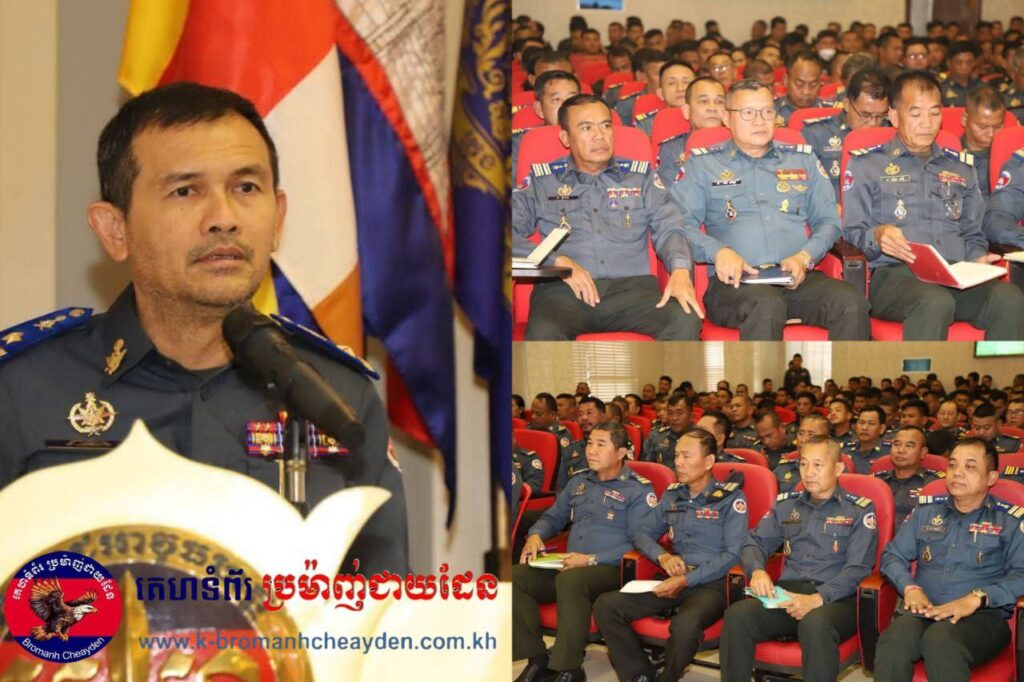 បន្ទាយមានជ័យ៖ នៅរសៀលថ្ងៃព្រហសប្បតិ៍ ទី២២ ខែមករា ឆ្នាំ២០២៦ លោកឧត្តមសេនីយ៍ត្រី បោន ប៊ិន មេបញ្ជាការកងរាជអាវុធហត្ថខេត្តបន្ទាយមានជ័យ អញ្ជើញជាអធិបតីភាព ក្នុងកិច្ចប្រជុំត្រួតពិនិត្យវឌ្ឍនភាពការងារ និងទិសដៅអនុវត្តបន្ត និងផ្សព្វផ្សាយ ការងារប្រយុទ្ធប្រឆាំងការឆកបោកតាមប្រព័ន្ធបច្ចេកវិទ្យា (online scams)។ កិច្ចប្រជុំនេះក៏មានការចូលរួមពីសំណាក់លោកមេបញ្ជាការរង លោកនាយសេនាធិការរង លោកប្រធាន-អនុប្រធានមន្ទីរទាំង៧ លោកនាយការិយាល័យ, លោកមេបញ្ជាការ មេបញ្ជាការរង មូលដ្ឋានក្រុង ស្រុកទាំង៩ លោកប្រធានស្នាក់ការសន្តិសុខ និងកម្លាំងកងរាជអាវុធហត្ថទាំងអស់ដែលកំពុងបំរើការងារនៅសេនាធិការដ្ឋានកងរាជអាវុធហត្ថខេត្ត។