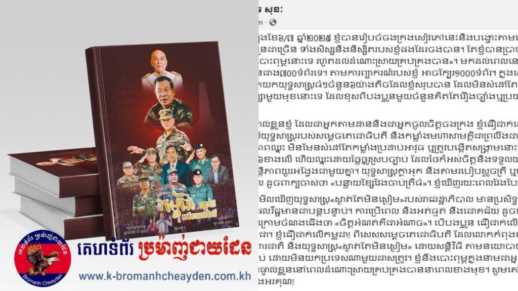 សូមជម្រាបថា សៀវភៅនេះនឹងត្រូវបោះពុម្ពជាផ្លូវការ ក្នុងនាមជាការសរសេរឯករាជ្យរបស់អ្នកនិពន្ធ នៅពេលដំណោះស្រាយសមស្របត្រូវបានគ្រប់គ្រងបាននាពេលអនាគត។