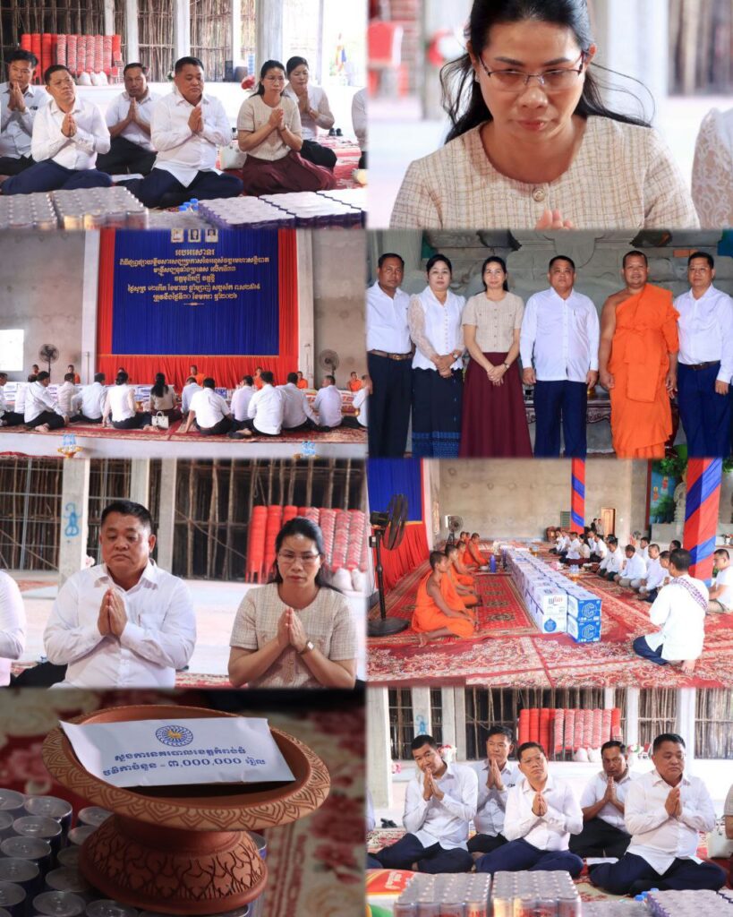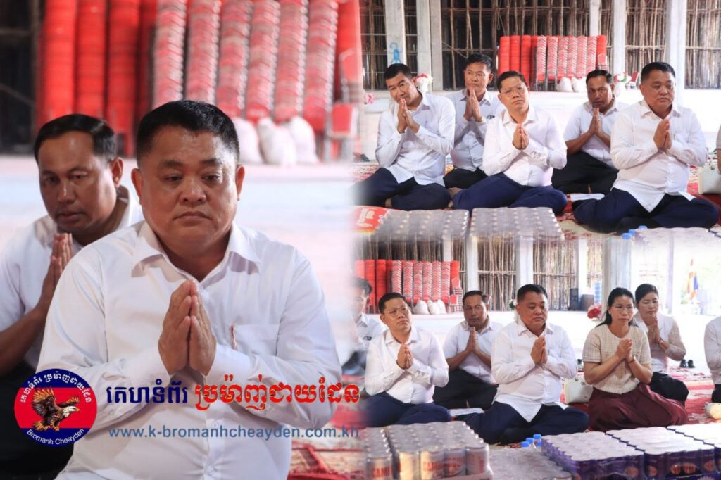 ក្នុងពិធីនោះ លោកឧត្តមសេនីយ៍ទោ ហេង សុផល ស្នងការនគរបាលខេត្ត និងលោកស្រី លឹម អៀងចេង បាន បូជាផ្កាភ្ញី ទានធូប ជូនចំពោះព្រះរតនត្រ័យ និងសូត្រមន្ត សមាទានសីល ឧទិ្ទសមហាកុសល ផលបុណ្យ ជូនចំពោះដួងវិញ្ញាណក្ខន្ធ បុព្វការីជន ញាតិមិត្តទាំងប្រាំពីរសណ្ដាន និងដួងវិញ្ញាណក្ខន្ធបុព្វបុរសខ្មែរ វីរកងទ័ព ដែលបានពលីជីវិត ជូនជាតិមាតុភូមិ ក្នុងបុព្វហេតុការពារទឹកដី នៃព្រះរាជាណាចក្រកម្ពុជា ក្នុងអំឡុងជម្លោះព្រំដែនកម្ពុជា-ថៃ សូមបានសោយសុខនៅឋានបរមសុខ កុំបីឃ្លៀងឃ្លាតឡើយ ព្រមទាំងទទួលបាននូវមគ្គផលគ្រប់ៗ គ្នា ។