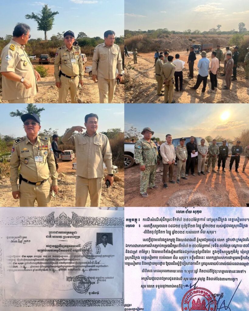 នៅថ្ងៃទី២៣ ខែមករា ឆ្នាំ២០២៦ រដ្ឋបាលខេត្តសៀមរាប ដឹកនាំដោយលោក ឌុច គីមដម អភិបាលរងខេត្ត និងមន្ត្រីជំនាញពាក់ព័ន្ធ បានចុះពិនិត្យទីតាំង និងសន្និដ្ឋានថា ករណីនេះគ្មានបទល្មើស ដោយសារមាន៖