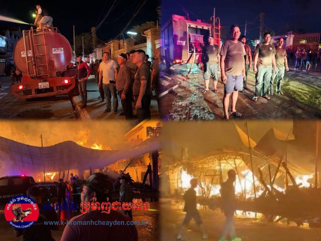 ខេត្តបន្ទាយមានជ័យ៖ កាលពីវេលាម៉ោង ១:៣០ នាទី រំលងអធ្រាត្រ ឈានចូលថ្ងៃទី០៦ ខែកុម្ភៈ ឆ្នាំ២០២៦ មានករណីអគ្គិភ័យដ៏ធំមួយបានកើតឡើងនៅទីតាំងសិប្បកម្មកែច្នៃចម្លាក់ឈើ (គល់ឈើ) មួយកន្លែង ដែលមានទំហំ ៤០ម៉ែត្រ គុណ ៤០ម៉ែត្រ ស្ថិតក្នុងភូមិបាលិលេយ្យ២ សង្កាត់ប៉ោយប៉ែត ក្រុងប៉ោយប៉ែត។