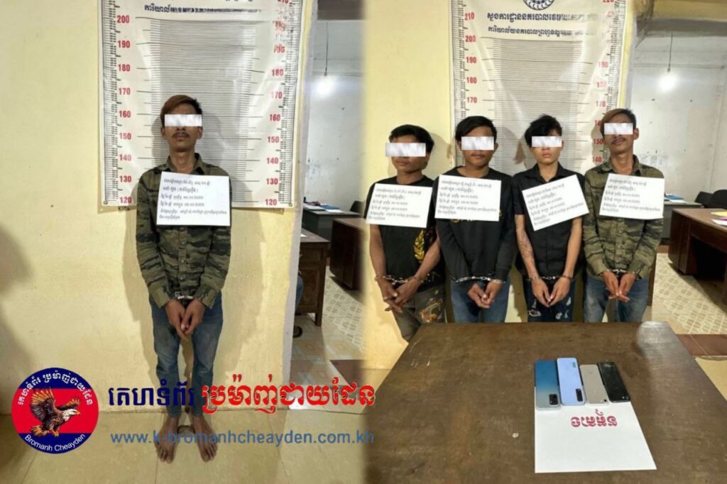 ខេត្តស្ទឹងត្រែង៖ អនុវត្តតាមបទបញ្ជាផ្ទាល់របស់ ឯកឧត្តម សរ សុពុត្រា អភិបាលខេត្ត និងដឹកនាំបញ្ជាដោយ លោកឧត្តមសេនីយ៍ទោ សារី បុត្រសត្យា ស្នងការនគរបាលខេត្តស្ទឹងត្រែង កម្លាំងជំនាញបានបើកប្រតិបត្តិការបង្ក្រាបករណីលួច (កាត់ខ្សែភ្លើង), ទទួលផលចោរកម្ម និងប្រើប្រាស់គ្រឿងញៀន ដោយឃាត់ខ្លួនជនសង្ស័យបានចំនួន ៥ នាក់។