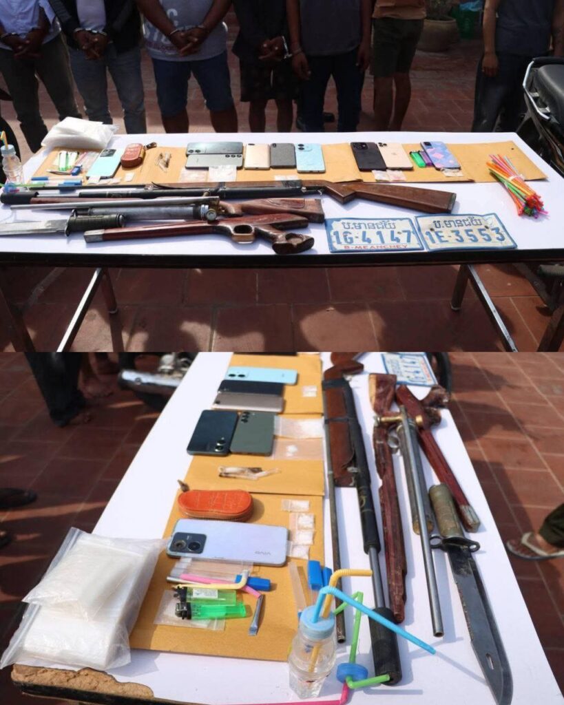 អាវុធ៖ កាំភ្លើងស្នប់កែច្នៃ ០៣ដើម និងកាំបិតស្នៀត ០១ដើម។