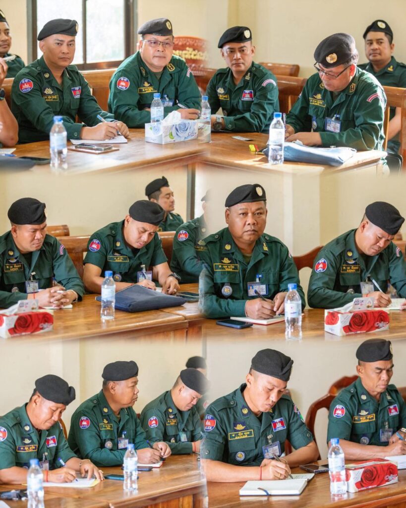 ថ្នាក់ដឹកនាំបានស្តាប់របាយការណ៍ និងកោតសរសើរចំពោះស្មារតីទទួលខុសត្រូវខ្ពស់របស់កងកម្លាំង ដែលបានខិតខំបំពេញភារកិច្ចការពារបូរណភាពទឹកដី និងសុវត្ថិភាពជូនប្រជាពលរដ្ឋនាពេលកន្លងមក។