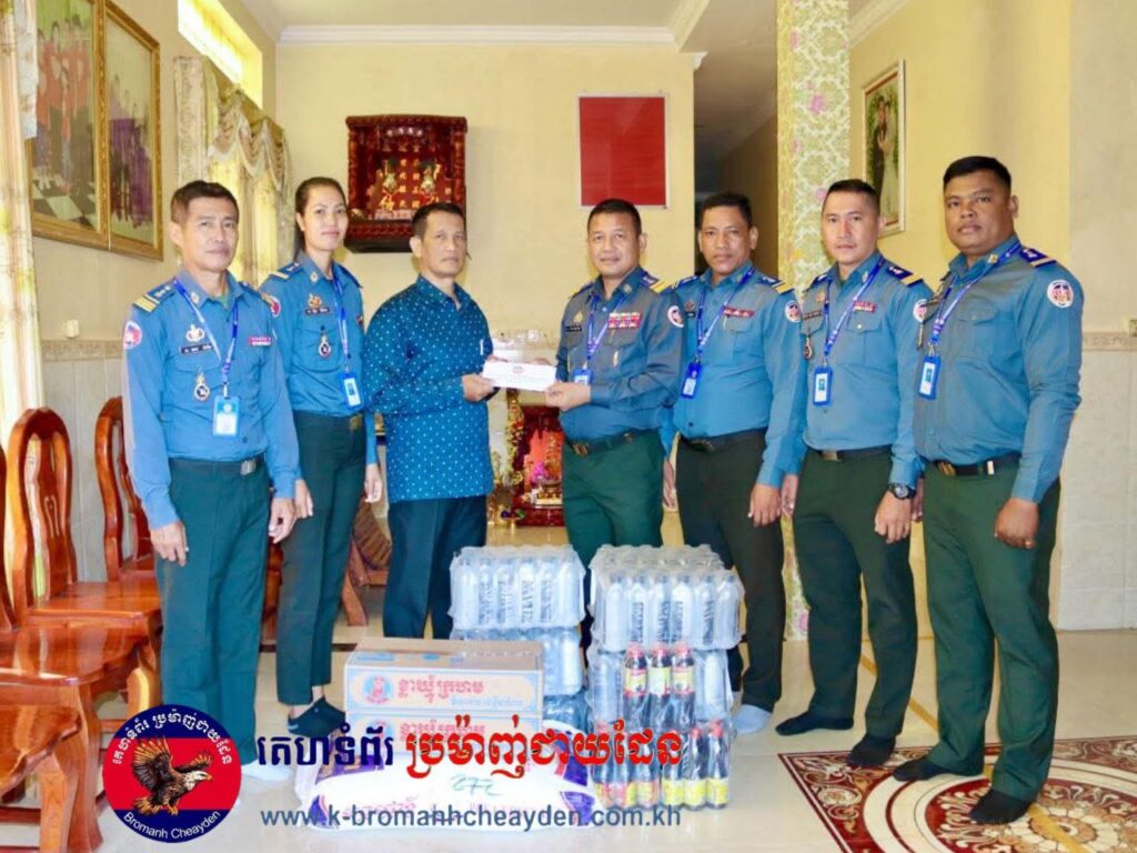 ខេត្តកំពង់ឆ្នាំង៖ កាលពីព្រឹកថ្ងៃទី០៩ ខែកុម្ភៈ ឆ្នាំ២០២៦ លោកវរសេនីយ៍ឯក និល ប៊ុនធឿន មេបញ្ជាការរង តំណាងដ៏ខ្ពង់ខ្ពស់ លោកឧត្តមសេនីយ៍ត្រី សាន្ត ប៊ុនថាន មេបញ្ជាការកងរាជអាវុធហត្ថខេត្តកំពង់ឆ្នាំង បានដឹកនាំក្រុមការងារចុះសាកសួរសុខទុក្ខ លោកវរសេនីយ៍ត្រី សោម វណ្ណារិទ្ធិ ប្រធានមន្ទីរផែនការ ប្រតិបត្តិការ និងហ្វឹកហ្វឺន ដែលកំពុងសម្រាកព្យាបាលជំងឺនៅគេហដ្ឋាន ស្ថិតក្នុងសង្កាត់ប្អេរ ក្រុងកំពង់ឆ្នាំង។