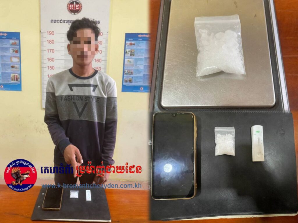 កាលពីវេលាម៉ោង ១៣:៥០នាទី ថ្ងៃទី២៤ ខែកុម្ភៈ ឆ្នាំ២០២៦ កម្លាំងមន្ទីរស្រាវជ្រាវ និងបង្ក្រាបបទល្មើស ដឹកនាំដោយ លោកអនុ សេនីយ៍ឯក ជួនតូរ:ត:នាយការិយាល័យប្រឆាំងគ្រឿងញៀន បានចុះប្រតិបត្តិការបង្ក្រាបករណី រក្សាទុក ជួញដូរ និងប្រើប្រាស់នូវសារធាតុញៀនជាក់ស្ដែង នៅចំណុចលើទួលខាងកើតភូមិ ស្ថិតក្នុងភូមិសំរោង ឃុំត្រឡាច ស្រុកទ្រាំង ខេត្តតាកែវ។
