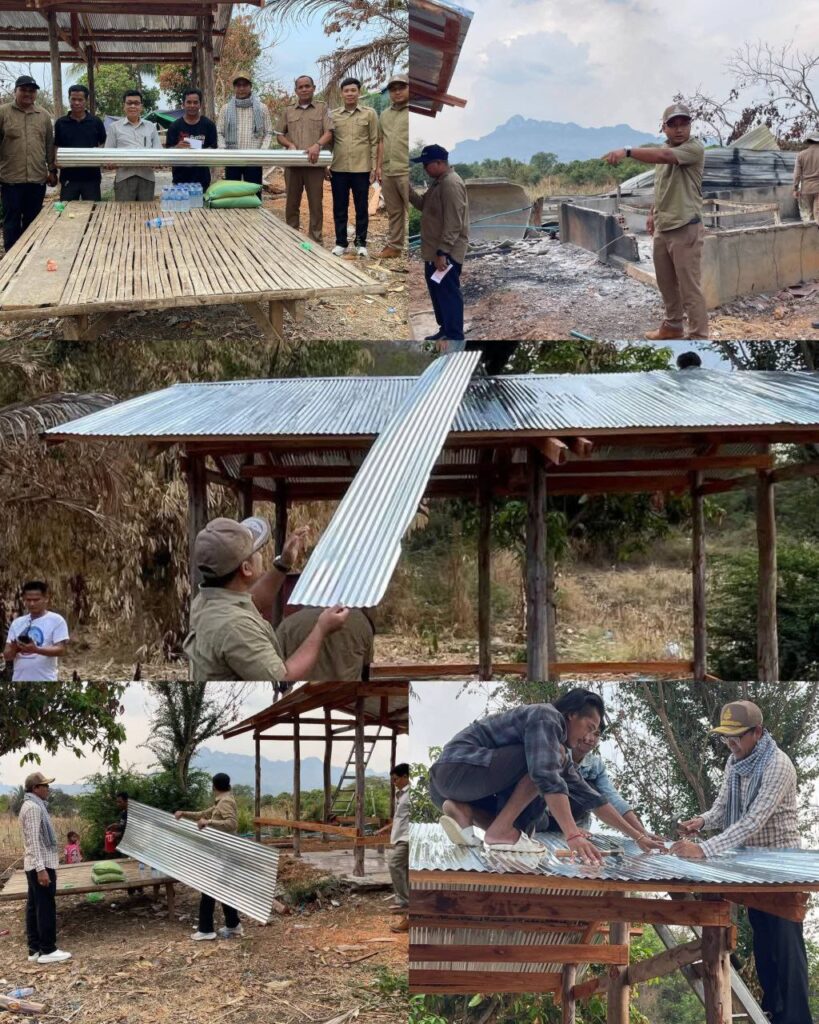 លោកអភិបាលបានដឹកនាំមន្ត្រីរាជការជួយសាងសង់ផ្ទះបណ្ដោះអាសន្នដោយផ្ទាល់ដៃ។