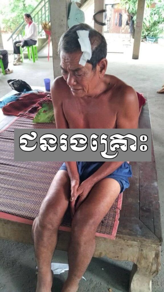 យោងតាមរបាយការណ៍ពីសមត្ថកិច្ច មុនពេលកើតហេតុ ជនសង្ស័យ និងជនរងគ្រោះឈ្មោះ ប៉េន អោម ភេទប្រុស អាយុ ៦៧ឆ្នាំ (ត្រូវជាឪពុកក្មេក) បានមានជម្លោះពាក្យសម្តីនឹងគ្នា។ ដោយសារកំហឹងខឹងនឹងឪពុកក្មេកស្ដីបន្ទោសឱ្យខ្លួន ជនសង្ស័យបានទាញកាំបិតផ្គាក់ រួចប្រើខ្នងកាំបិតកាប់ទៅលើជនរងគ្រោះចំក្បាលយ៉ាងដំណំ បណ្ដាលឲ្យបែកក្បាលដេរចំនួន ០៤ថ្នេរ។