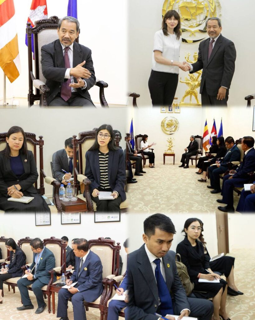 ភ្នំពេញ៖ ឯកឧត្តមទេសរដ្ឋមន្ត្រី កែវ រ៉េមី ប្រធានគណៈកម្មាធិការសិទ្ធិមនុស្សកម្ពុជា (គ.ស.ម.ក.) និងលោកលោកស្រី Vladanka Andreeva អ្នកសម្របសម្រួលអង្គការសហប្រជាជាតិប្រចាំកម្ពុជា (UN Resident Coordinator) បានជួបពិភាក្សាការងារ និងពង្រឹងកិច្ចសហប្រតិបត្តិការរវាងស្ថាប័នទាំងពីរ នៅរសៀលថ្ងៃទី១២ ខែមីនា ឆ្នាំ២០២៦។