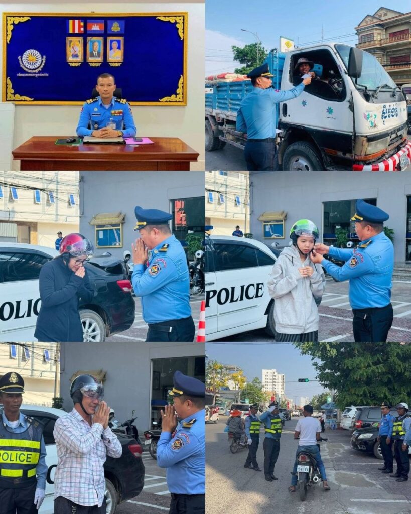 ខេត្តបន្ទាយមានជ័យ÷ នៅព្រឹកថ្ងៃទី០៧ ខែមេសា ឆ្នាំ២០២៦នេះ កម្លាំងនគរបាលក្រុងប៉ោយប៉ែត បានចុះយុទ្ធនាការផ្សព្វផ្សាយច្បាប់ចរាចរណ៍ផ្លូវគោក ព្រមទាំងបានចែកមួកសុវត្ថិភាពដោយឥតគិតថ្លៃជូនដល់បងប្អូនប្រជាពលរដ្ឋ អ្នកធ្វើដំណើរនៅចំណុចស្តុបអេស៊ីលីដា តាមបណ្ដោយផ្លូវជាតិលេខ ៥ ក្នុងភូមិបាលិលេយ្យ២ សង្កាត់ប៉ោយប៉ែត។ សកម្មភាពសំខាន់ៗក្នុងយុទ្ធនាការចែកមួកសុវត្ថិភាព លោកវរសេនីយ៍ទោ បោន ភក្ត្រា អធិការរងទទួលការងារសណ្តាប់ធ្នាប់ បានដឹកនាំកម្លាំងចុះចែកមួកសុវត្ថិភាពចំនួន ៥០មួក ដែលជាអំណោយដ៏ថ្លៃថ្លារបស់ លោកវរសេនីយ៍ទោ ព្រហ្មពិ សិដ្ឋ អធិការនគរបាលក្រុងប៉ោយប៉ែត។