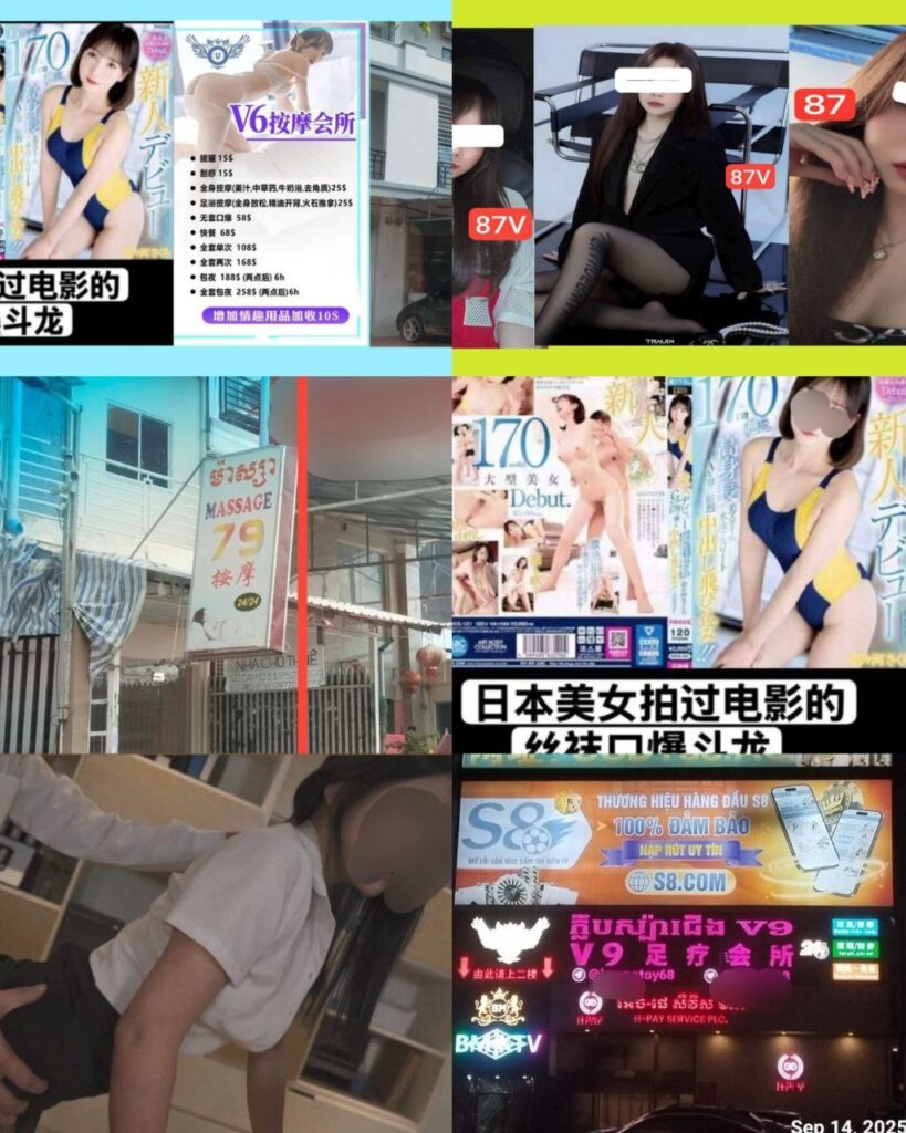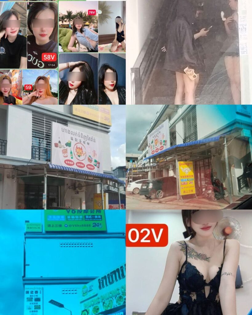 តាមប្រភពសេចក្តីរាយការណ៍បានឲ្យដឹងថា «ទីតាំងក្នុងផ្ទះល្វែងមួយកន្លែង ដែលមានយីហោ «ក្លឹបម៉ាស្សា V6» បានបើកទទួលបម្រើសេវាកម្មផ្លូវភេទ ២៤ម៉ោង ហើយមាននារីៗ ជាច្រើនជាតិសាសន៍ សម្រាប់ទទួលនិងបម្រើសេវាផ្លូវភេទ ដល់អតិថិជនទៀតផង។
