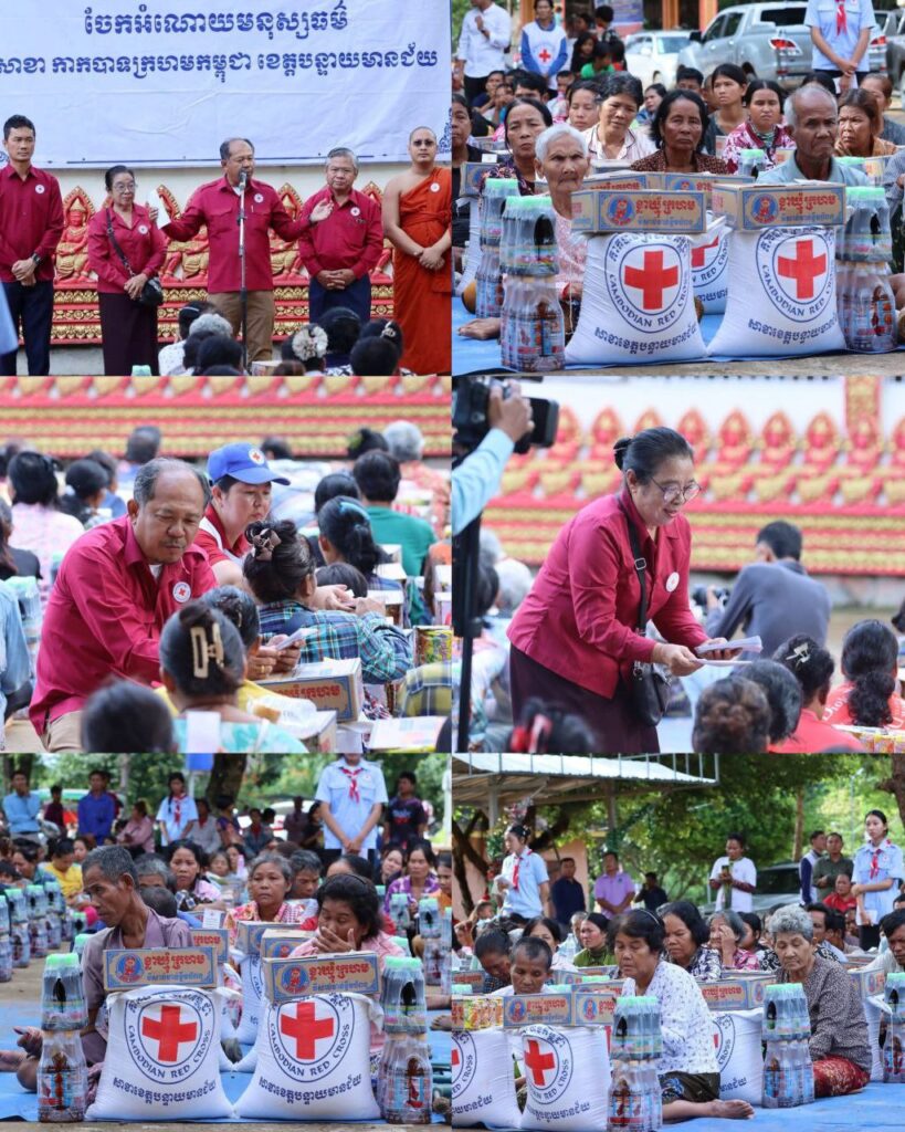 ខេត្តបន្ទាយមានជ័យ៖ នៅព្រឹកថ្ងៃពុធ ទី១ ខែតុលា ឆ្នាំ២០២៥ ឯកឧត្តម អ៊ុំ រាត្រី អភិបាល នៃគណៈអភិបាលខេត្តបន្ទាយមានជ័យ និងជាប្រធានគណៈកម្មាធិការសាខាកាកបាទក្រហមកម្ពុជាខេត្ត បាននាំយកអំណោយមនុស្សធម៌សាខាកាកបាទក្រហមកម្ពុជាខេត្ត ផ្តល់ជូនដល់ពលរដ្ឋដែលមានជីវភាពខ្វះខាត២៥០គ្រួសារ មកនៅក្នុងភូមិសិលាខ្មែរ ១៥០គ្រួសារ និងភូមិទំនប់ដាច់១០០គ្រួសារ ពិធីនេះប្រារព្ធធ្វើឡើងនៅវត្តសុវណ្ណសីលារាម (វត្តអាងសិលា) ស្ថិតនៅឃុំអូរបីជាន់ ស្រុកអូរជ្រៅ ខេត្តបន្ទាយមានជ័យ។