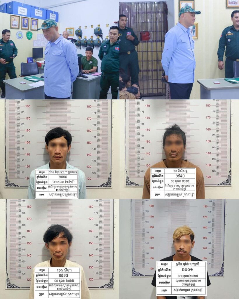 កណ្តាល÷អនុវត្តតាមបទបញ្ជា លោកឧត្តមសេនីយ៍ទោ ឈឿន សុចិត្ត ស្នងការនគរបាលខេត្តកណ្តាល កម្លាំងជំនាញព្រហ្មទណ្ឌនៃអធិការដ្ឋាននគរបាលក្រុងតាខ្មៅ ដឹកនាំដោយលោកវរសេនីយ៍ឯក យី វណ្ណដា អធិការនគរបាលក្រុងតាខ្មៅ សហការជាមួយ នគរបាលស្រុកស្អាង ស្រាវជ្រាវឈានដល់ការបង្ក្រាបឃាត់ខ្លួន ជនសង្ស័យ ៤នាក់ យោងតាមការសាកសួរក្រុមជនសង្ស័យបានសារភាពថាពួកគេតែងនាំគ្នាជិះម៉ូតូ២-៣គ្រឿង តាមតំបន់ស្ងាត់ៗយប់ជ្រៅ បើឃើញនរណាអាចជាឪកាស គឺក្រុមពួកគេនឹងដេញតាមកាប់ដើម្បីប្លន់យកម៉ូតូ ទូរស័ព្ទ ជាក់ស្តែងនៅយប់ថ្ងៃទី០១ ខែតុលា ឆ្នាំ២០២៥ ម៉ោង០១និង៣០នាទីចំណុច ភូមិព្រែកខ្សេវ សង្កាត់រកាខ្ពស់ ក្រុងតាខ្មៅ ខេត្តកណ្តាល ក្រុមខាងលើបានធ្វើសកម្មភាព ភ្លាមៗត្រូវនគរបាលជំនាញដឹកនាំកម្លាំងចេញអន្តរាគន៍ឃាត់ខ្លួនជាបន្តរបន្ទាប់ ដោយជនសង្ស័យទាំង៤នាក់មានដូចជា