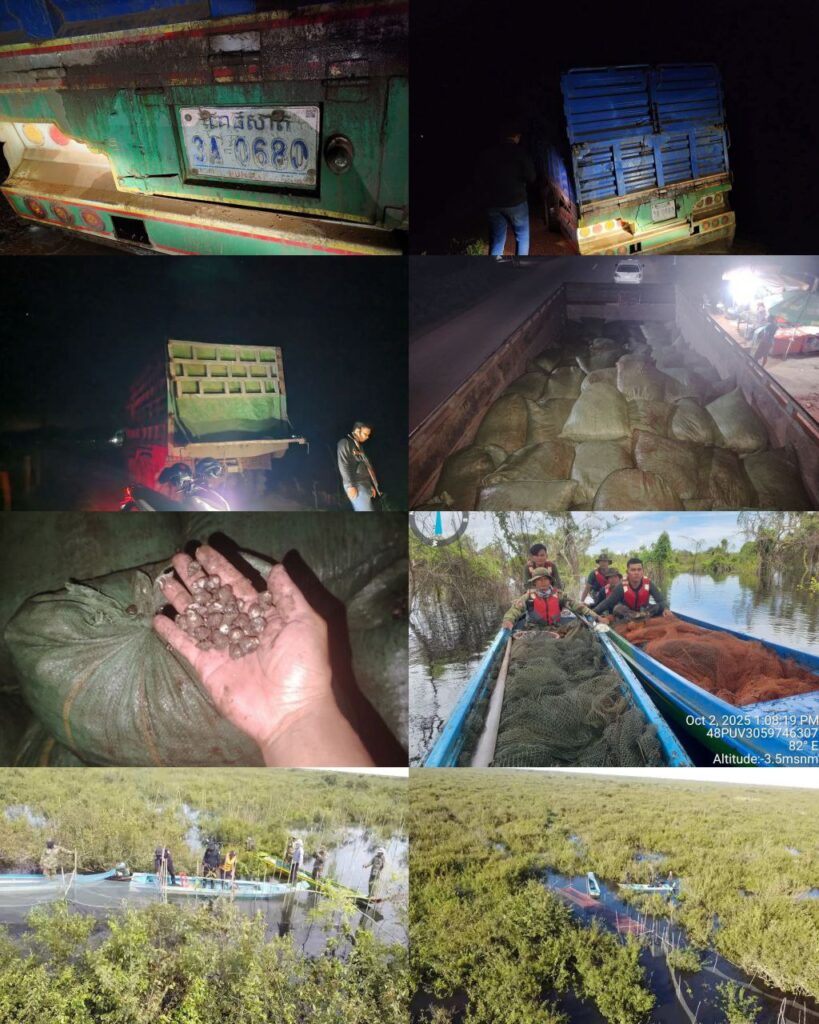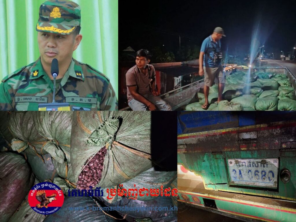 ខេត្តកំពង់ធំ÷នៅយប់ថ្ងៃទី៣ ខែតុលា ឆ្នាំ២០២៥ វេលាម៉ោង២ៈ៣០នាទីយប់ ឧត្តមសេនីយ៍ទោ សេង ធារិន ប្រធានគណៈបញ្ជាការដឹកនាំបង្រ្កាបបទលើ្មសនេសាទលើផ្ទៃបឹងទន្លេសាប បានចាត់តាំងកម្លាំងអង្គភាព ចំណុះយោធភូមិភាគទី៥ ដឹកនាំដោយវរសេនីយ៍ទោ ស វិបុល សហការជាមួយកម្លាំងតំបន់ប្រតិបត្តិការសឹករងកំពង់ឆ្នាំង និងកម្លាំងការិយាល័យទី២ កងទ័ពជើងគោក ចុះប្រតិបត្តិការបង្រ្កាបការជួញដូរ និងដឹកលៀសដោយខុសច្បាប់ ចំនួន ៣០តោន ស្ថិតនៅក្នុងភូមិសាស្រ្តស្រុកស្ទោង ខេត្តកំពង់ធំ។