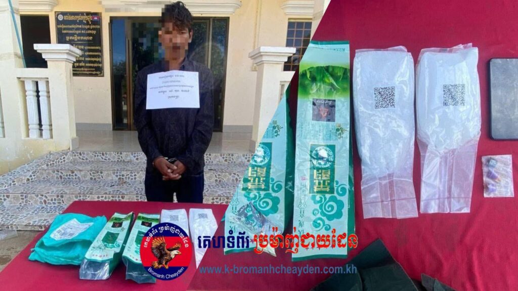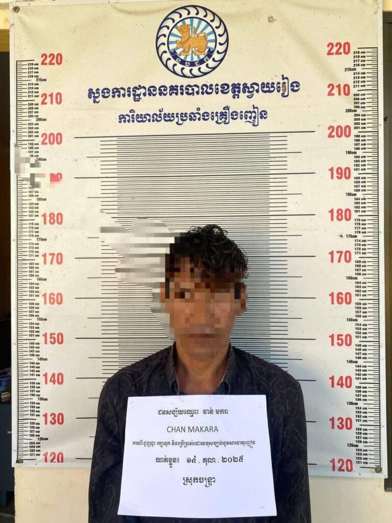 ស្វាយរៀង ៖ អនុវត្តតាមបទបញ្ជារដ៍មុឺងម៉ាត់របស់ឯកឧត្តម នាយឧត្តមសេនីយ៍ ស ថេត អគ្គស្នងការនគរបាលជាតិ និងការយកចិត្តទុកដាក់ចង្អុលណែនាំពី លោក ឧត្តមសេនីយ៍ទោ ពេជ្រ វីរ: ស្នងការនគរបាលខេត្ត កាលពីថ្ងៃទី១៥ ខែតុលា ឆ្នាំ២០២៥ លោកវរសេនីយ៍ទោ ជិន សុភឿន អធិការនគរបាលស្រុកចន្រ្ទា បានដឹកនាំកម្លាំងជំនាញដាក់គោលដៅត្រួតពិនិត្យអាវុធជាតិផ្ទុះនិងសារធាតុញៀន នៅចំណុចឃុំមេសថ្ងក ស្រុកចន្រ្ទា ខេត្តស្វាយរៀង ដោយមានការសង័្សយបានធ្វើការត្រួតពិនិត្យលើរថយន្តតាក់០១គ្រឿង មានដឹកអ្នកដំណើរម្នាក់ពីរាជធានីភ្នំពេញ គោលដៅមកកាន់ព្រំដែនឃុំសំរោង ស្រុកចន្ទ្រា នៅពេលធ្វើការត្រួតពិនិត្យ និងឆែកឆែរក្នុងកាបូបស្ពាយរបស់អ្នកដំណើរក៏រកឃើញវត្ថុតាងថ្នាំញៀន ប្រភេទមេតំហ្វេតាមីន ចំនួន០២ដុំធំ(ទម្ងន់១,៩៩៨.០៦ក្រាម)ជិត០២គីឡូក្រាម។
