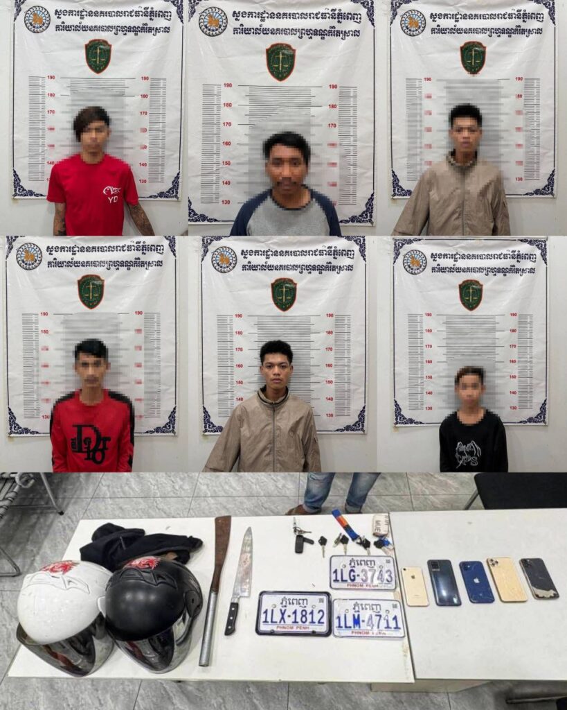 ភ្នំពេញ÷ដោយអនុវត្តតាមបទបញ្ជាផ្ទាល់របស់ឯកឧត្ដម ឧត្តមសេនីយ៍ ឯក ជួន ណារិន្ទ អគ្គស្នងការរង និងជាស្នងការនគរបាលរាជធានីភ្នំពេញ នៅថ្ងៃទី១៧ខែ តុលា ឆ្នាំ២០២៥.ក្រោមការបញ្ជារពីរ លោកស្នងការរង ប៊ុន សត្យា ទទួលផែនការងារព្រហ្មទណ្ឌ រាជធានីភ្នំពេញ.លោកប្រធានការិយាល័យនគរបាលព្រហ្មទណ្ឌកំរិតស្រាល នៃស្នងការដ្ឋានគរបាលរាជធានីភ្នំពេញ.លោកវរៈសេនីយ៍ឯក ម៉ម សាវន បានដឹកនាំកំលាំងចុះបង្ក្រាបដោយផ្ទាល់ នឹងបានឃាត់ខ្លួន ជនសង្ស័យចំនួន ៦នាក់ និងម៉ូតូ៤គ្រឿង ដាវ(ធ្វេីសកម្មភាពកាប់ជនរងគ្រោះ) ២ដេីម។