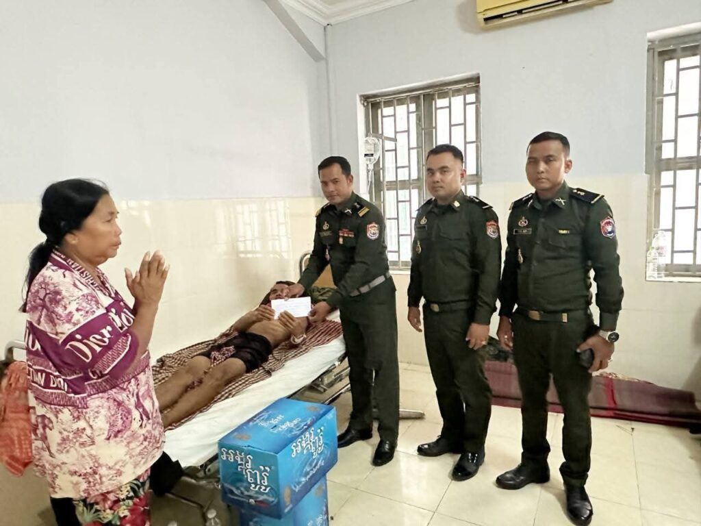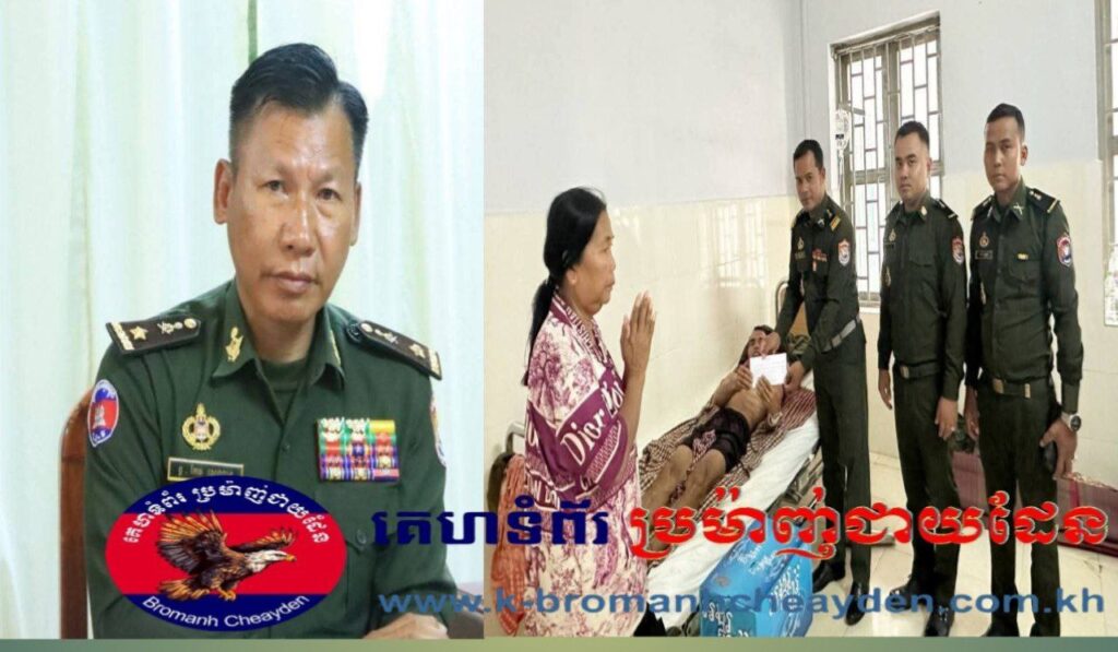 បាត់ដំបង៖ ថ្ងៃទី៣១ ខែសីហា ឆ្នាំ២០២៥ ដោយមានការយកចិត្តទុកដាក់ពីសំណាក់ ឧត្តមសេនីយ៍ត្រី កែវ សេងលន មេបញ្ជាការ កងពលតូចថ្មើរជើងលេខ៥៣ បានចាត់តាំង លោកវរសេនីយ៍ត្រី កែវ គៈវីន មេបញ្ជាការ វរសេនាតូចលេខ៥៣២ បានដឹកនាំក្រុមការងារ នាំយកថវិកា ចុះសួរសុខទុក្ខ លោកនាយចំណង់ ភឹម ផន អាយុ៦៤ឆ្នាំ មុខងារ មេបញ្ញាការរងខ គ២ វរសេនាតូចលេខ៥៣២ ដែលកំពុងសម្រាកព្យាបាលជំងឺនៅមន្ទីរពេទ្យយោធភូមិភាគទី៥ (ពេទ្យពពី) និងបានឧបត្ថម្ភថវិកា ១.០១៥.០០០រៀល (មួយលានមួយម៉ឺនរៀល) ទឹកសុទ្ធចំនួន ២កេសធំ។