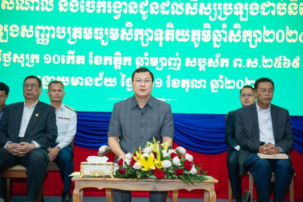 បន្ទាយមានជ័យ៖ នៅព្រឹកថ្ងៃទី៣១ ខែតុលា ឆ្នាំ២០២៥ នៅសាលប្រជុំធំ សាលាខេត្តបន្ទាយមានជ័យ ឯកឧត្តម ឌិត ទីណា រដ្ឋមន្រ្តីក្រសួងកសិកម្ម រុក្ខាប្រមាញ់ និងនេសាទ និងជាប្រធានក្រុមការងាររាជរដ្ឋាភិបាលចុះមូលដ្ឋានខេត្តបន្ទាយមានជ័យ បានអញ្ជើញជាធិបតីក្នុងពិធីជួបសំណេះសំណាល និងប្រគល់រង្វាន់លើកទឹកចិត្តដល់សិស្សដែលបានប្រឡងជាប់និទ្ទេស A ចំនួន ១២៦ នាក់ ក្នុងឆ្នាំសិក្សា ២០២៤-២០២៥។