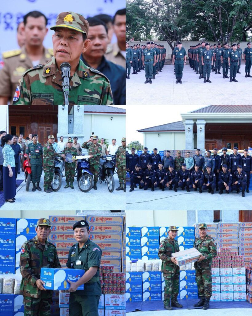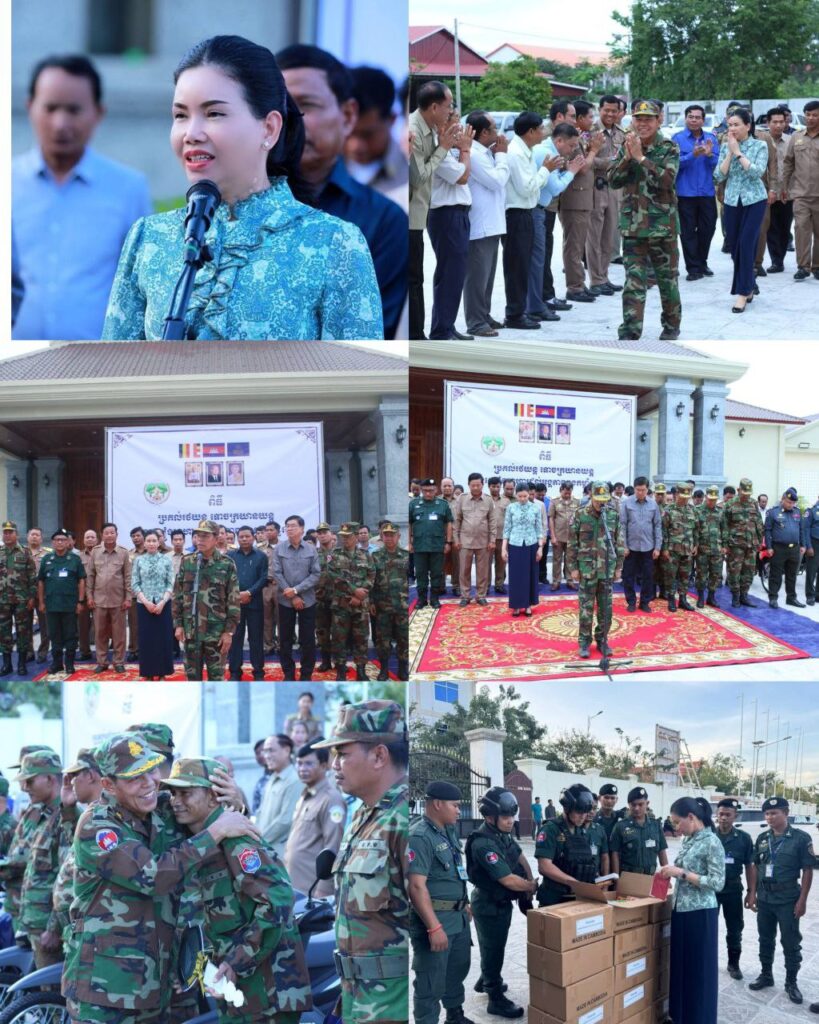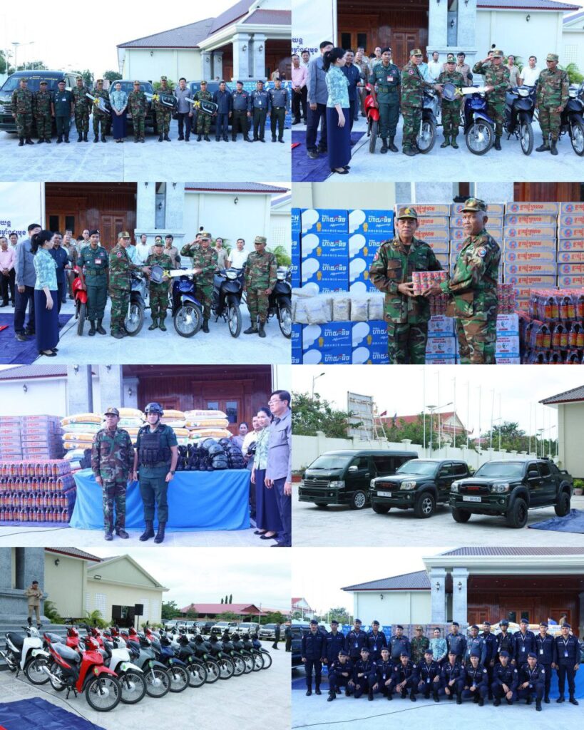 ខេត្តប៉ៃលិន៖ រសៀលថ្ងៃទី១៤ ខែវិច្ឆិកា ឆ្នាំ២០២៥ ឯកឧត្តម អ៊ី ឈាន ទេសរដ្ឋមន្ត្រីទទួលបន្ទុកបេសកកម្មពិសេស និងជាប្រធានក្រុមការងាររាជរដ្ឋាភិបាលចុះមូលដ្ឋានខេត្តប៉ៃលិន អមដំណើរដោយ លោកជំទាវបណ្ឌិត បាន ស្រីមុំ អភិបាល នៃគណៈអភិបាលខេត្តប៉ៃលិន ព្រមទាំងក្រុមការងារ បានអញ្ជើញសំណេះសំណាលសួរសុខទុក្ខ លើកទឹកចិត្ត និងបានផ្តល់អំណោយ រថយន្ត ០៣គ្រឿង ទោចក្រយានយន្ត ២១គ្រឿង រួមទាំងសម្ភារៈបរិក្ខា ស្បៀងអាហារ និងថរិកា ជូនដល់បណ្តាអង្គភាពកងកំលាំងជួរមុខ ដែលកំពុងឈរជើងការពារបូរណភាពទឹកដី នៅតាមបន្ទាត់ព្រំដែន និង កម្លាំងចល័ត អន្តរាគមន៍ការពារសន្តិសុខសណ្តាប់ធ្នាប់តាមមូលដ្ឋាន គ្រប់អង្គភាព នៃកងកម្លាំងចម្រុះគណៈបញ្ជាការខេត្តប៉ៃលិន។