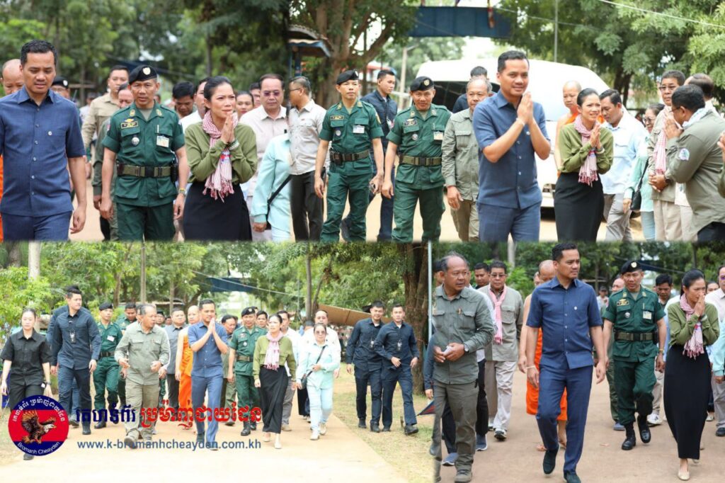 បន្ទាយមានជ័យ៖ នៅព្រឹកថ្ងៃទី១៧ ខែវិច្ឆិកា ឆ្នាំ២០២៥ លោកឧត្តមសេនីយ៍ទោ សិទ្ធិ ឡោះ ស្នងការនៃស្នងការដ្ឋាននគរបាលខេត្តបន្ទាយមានជ័យ ដឹកនាំកម្លាំងនគរបាលចុះការពារសន្តិសុខសុវត្ថិភាព និងរៀបចំសណ្តាប់ធ្នាប់ សម្រួលចរាចរណ៍ជូនថ្នាក់ដឹកនាំ ក្នុងឱកាស ឯកឧត្តម អភិសន្តិបណ្ឌិត ស សុខា ឧបនាយករដ្ឋមន្ត្រី រដ្ឋមន្ត្រីក្រសួងមហាផ្ទៃ និងលោកជំទាវ កែ សួនសុភី ដឹកនាំក្រុមការងារចុះសួសុខទុក្ខប្រជាពលរដ្ឋ និងនាំយកអំណោយជាគ្រឿងឧបភោគ បរិភោគ សម្ភារៈប្រើប្រាស់ និងថវិការមួយចំនួន ទៅចែកជូនដល់ប្រជាពលរដ្ឋដែលកំពុងស្នាក់នៅជំរុំជនភៀសសឹក ក្នុងបរិវេនវត្តចាន់ស៊ីសាមគ្គីរតនារាម ស្ថិតនៅភូមិកូបកើត ឃុំកូប ស្រុកអូរជ្រៅ ក្រុងប៉ោយប៉ែត ខេត្តបន្ទាយមានជ័យ។