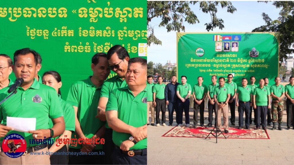 កំពង់ធំ÷ លោក ជា វ៉ាន់ចាន់ អភិបាលរងខេត្តកំពង់ធំ បានអំពាវនាវដល់ប្រជាពលរដ្ឋទាំងអស់ ត្រូវមានកាតព្វកិច្ចចូលរួមថែរក្សាអនាម័យបរិស្ថានទាំងអស់គ្នា អនាម័យស្អាត បរិស្ថានល្អ នាំឱ្យសុខភាពយើងរឹងមាំ។