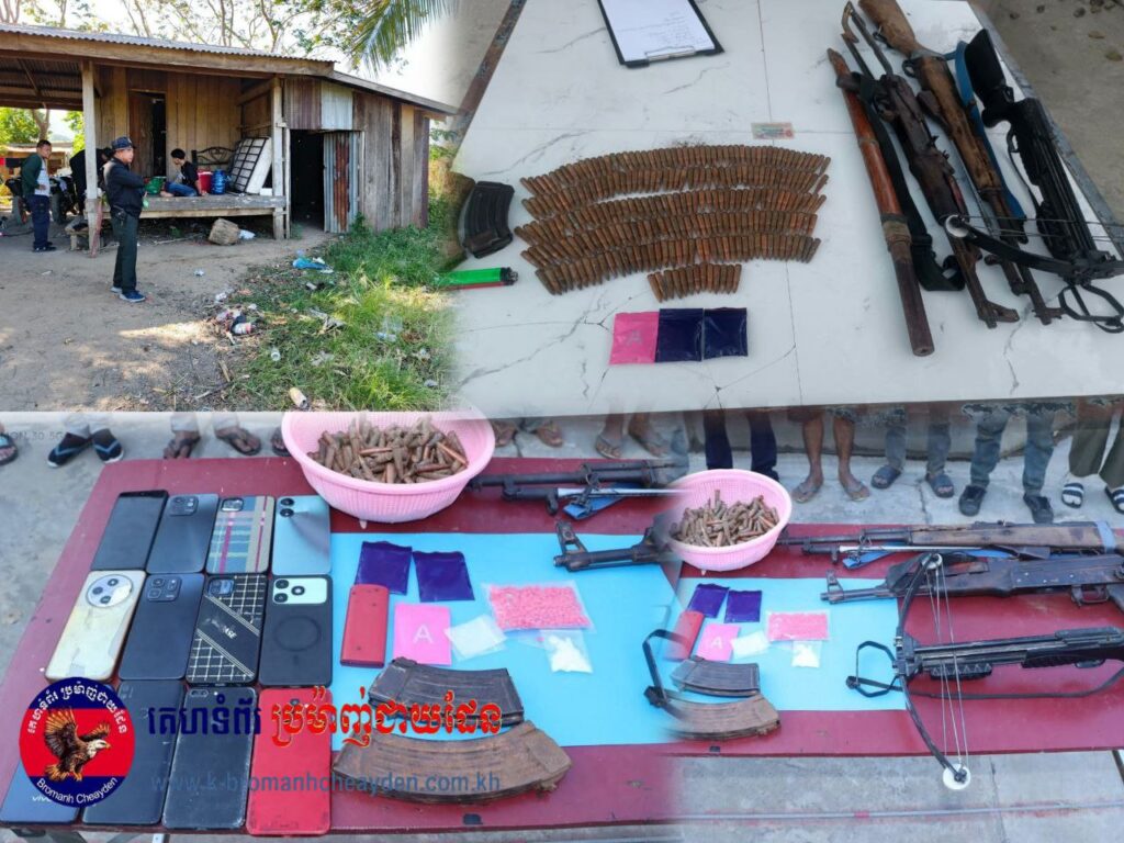 បន្ទាយមានជ័យ÷នៅវេលាម៉ោង១៧និង០៣នាទី ថ្ងៃទី២៩ ខែវិច្ឆិកា ឆ្នាំ២០២៥ នៅចំណុចក្នុងចំការ ស្ថិតក្នុងភូមិអូរសំព័រ ឃុំអូរសំព័រ ស្រុកម៉ាឡៃ ខេត្តបន្ទាយមានជ័យ កម្លាំងមូលដ្ឋានកងរាជអាវុធហត្ថស្រុកម៉ាឡៃ ដឹកនាំដោយលោកវរសេនីយ៍ត្រី តាំង សុខហេង មេបញ្ជាការមូលដ្ឋានកងរាជអាវុធហត្ថស្រុកម៉ាឡៃ សហការជាមួយកម្លាំងកងពលតូចថ្មើរជើងលេខ៥១ បានធ្វើប្រតិបត្តិការបង្រ្កាបករណីជួញដូរ រក្សាទុក និងប្រើប្រាស់ដោយខុសច្បាប់នូវសារធាតុញៀន, កាន់កាប់ ឬដឹកជញ្ជូនអាវុធដោយគ្មានការអនុញ្ញាត, រួមភេទ ជាមួយអនីតិជនក្រោមអាយុ១៥ឆ្នាំ ឃាត់ខ្លួនជនសង្ស័យជាបន្តបន្ទាប់ចំនួន១៤នាក់